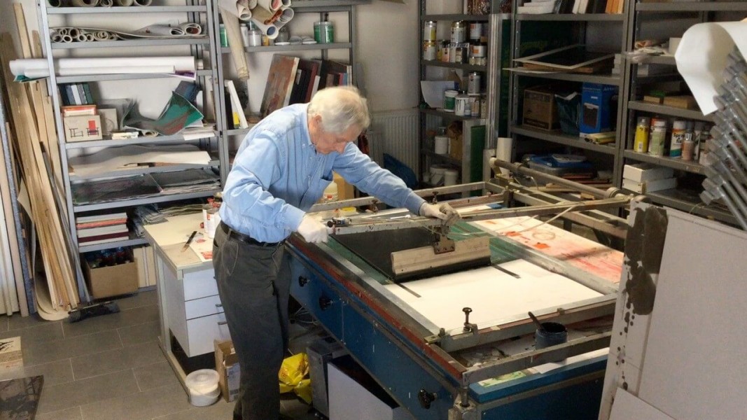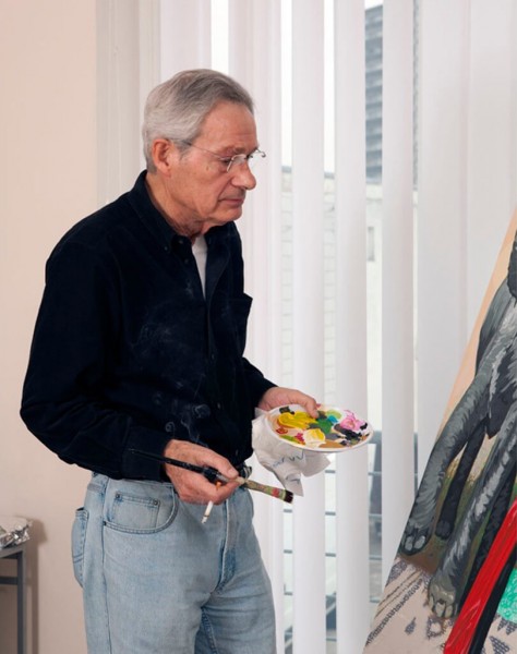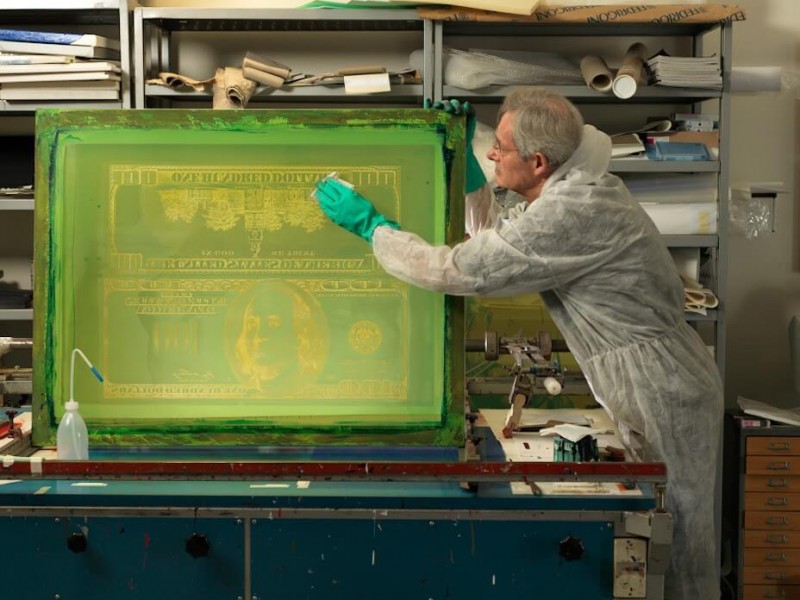 Neben dem Siebdruck verwende ich seit einigen Jahren verstärkt den Digitaldruck. Dabei wird das „eigentliche Bild“ digitalisiert oder direkt im Computer erzeugt. Der Vorteil liegt darin, dass Einzelbilder oder Kleinstauflagen individuell auf hochwertigem Material, wie Leinwand oder anderen, unterschiedlichen Papiersorten gedruckt werden können. Bei meinen neuen Arbeiten verwende ich ein Dia, befeuchte es mit einem Schwamm oder Pinsel und transferiere das Motiv mit einem Rakel auf Papier. Durch diese Technik entstehen die Wasserspuren auf dem Motiv. Das neu entstandene Bild wird gescannt, eventuell gerastert oder umgefärbt. Am Computer setze ich dann die gewünschten Einzelbilder zusammen. Nach dem Druck auf Leinwand übermale ich das ganze Bild.